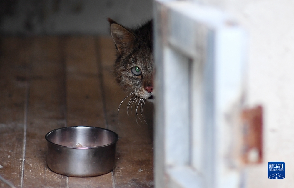9月18日,受救護(hù)的荒漠貓在青海野生動物救護(hù)繁育中心準(zhǔn)備進(jìn)食。新華社記者 張宏祥 攝