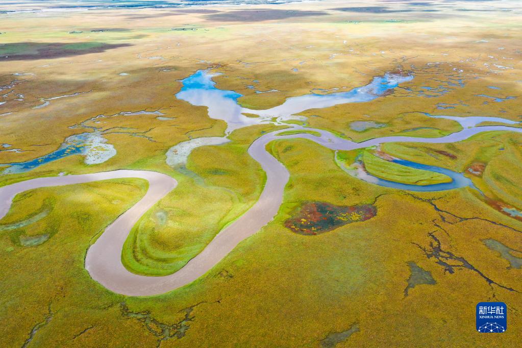 9月17日拍攝的阿萬倉濕地風(fēng)光(無人機(jī)照片)。新華社記者 郎兵兵 攝
