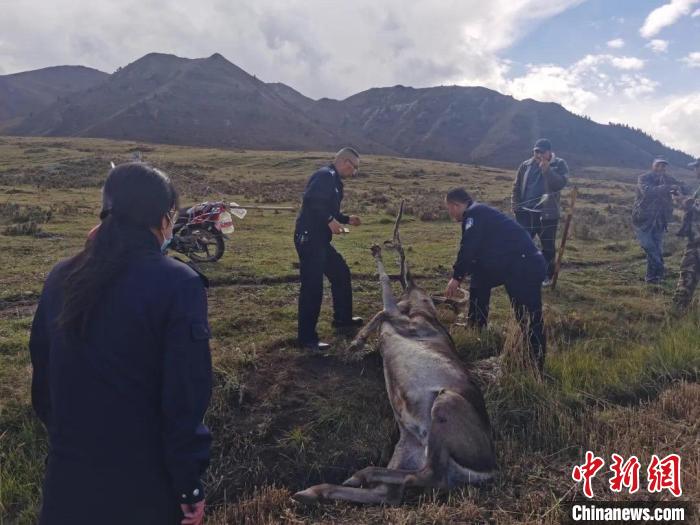 圖為被救助的馬鹿?!∑钸B山國家公園青海省管理局供圖