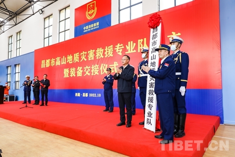 圖為昌都市高山地質災害救援專業(yè)隊成立暨裝備交接儀式現(xiàn)場
