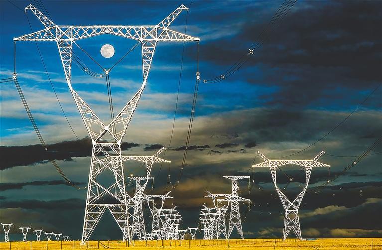 青藏、川藏、藏中、阿里電網(wǎng)聯(lián)網(wǎng),四條“電力天路”點(diǎn)亮西藏千家萬戶。2015年以來, 累計外送電量92億千瓦時。圖為“電力天路”鐵塔。