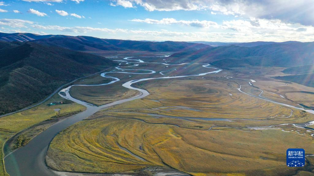 這是10月19日在四川省阿壩藏族羌族自治州若爾蓋縣拍攝的熱曲河(無人機(jī)照片)。新華社記者 王曦 攝