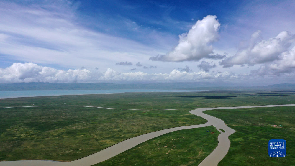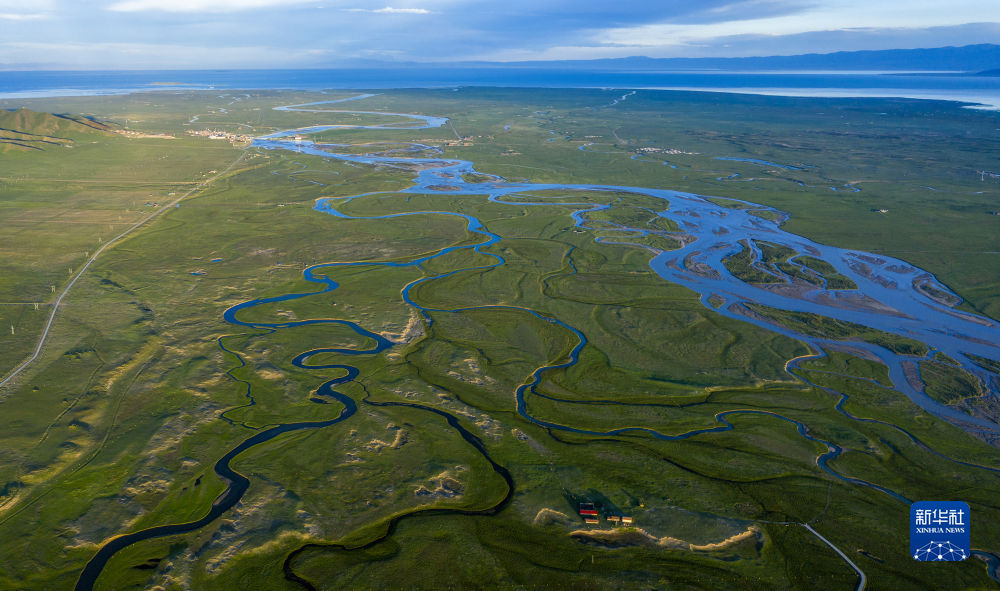 這是青海湖布哈河濕地一景(2020年7月18日攝,無(wú)人機(jī)照片)。新華社 楊濤 攝
