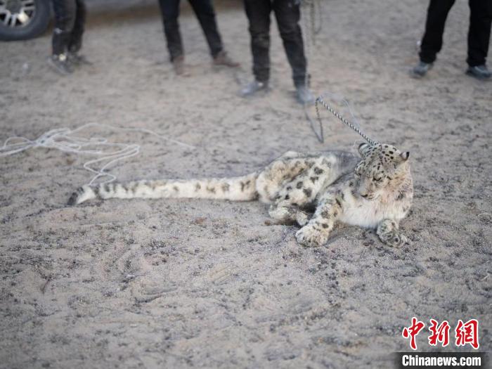 據(jù)駐村工作隊工作人員鄭殿之介紹,這只雪豹吃飽喝足后仍“賴在”羊圈,當(dāng)被牧民發(fā)現(xiàn)后,佯裝虛弱。被捕捉后,工作人員檢查無傷后,便將雪豹放歸了自然。