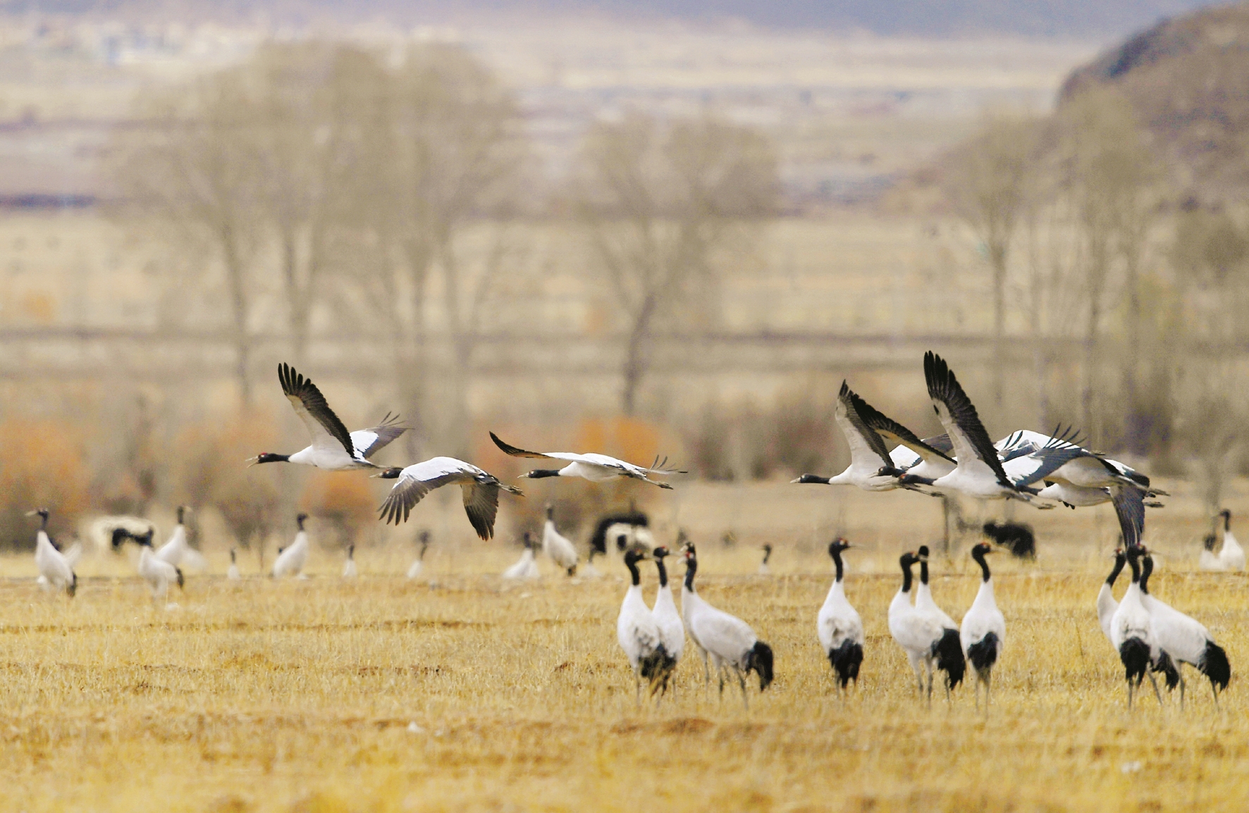 拉薩林周縣位于拉薩河上游及澎波河流域,是雅魯藏布江中游河谷地區(qū)黑頸鶴分布數(shù)量最為集中的保護(hù)區(qū)。黑頸鶴是國(guó)家一級(jí)保護(hù)動(dòng)物。目前,每年到林周縣越冬的黑頸鶴已達(dá)2000只左右,林周縣區(qū)域內(nèi)的大片濕地成為黑頸鶴的“冬季樂(lè)園”。