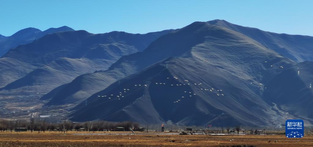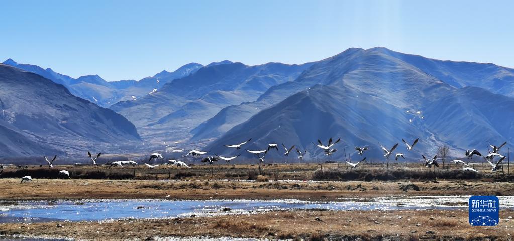 唐嘎鄉(xiāng)位于拉薩市達(dá)孜區(qū)東北部,這里每年冬季都會(huì)迎來(lái)黑頸鶴、斑頭雁、赤麻鴨等候鳥(niǎo)。這些珍稀鳥(niǎo)類時(shí)而在空中盤旋,時(shí)而棲息在水邊,營(yíng)造出一幅生機(jī)盎然的冬季畫卷。