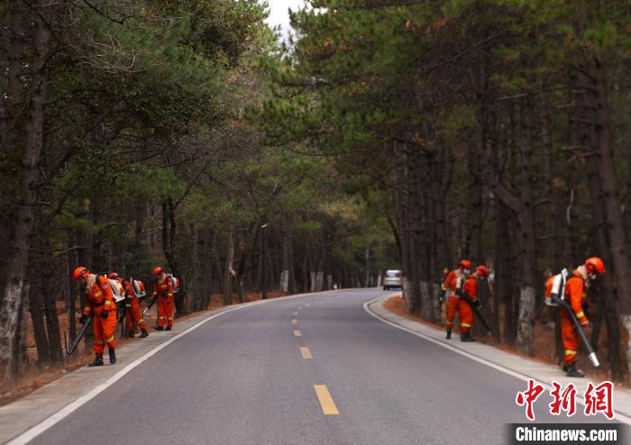圖為森林消防員正在清理道路兩側(cè)可燃物?!“鸵藚^(qū)森林消防中隊供圖