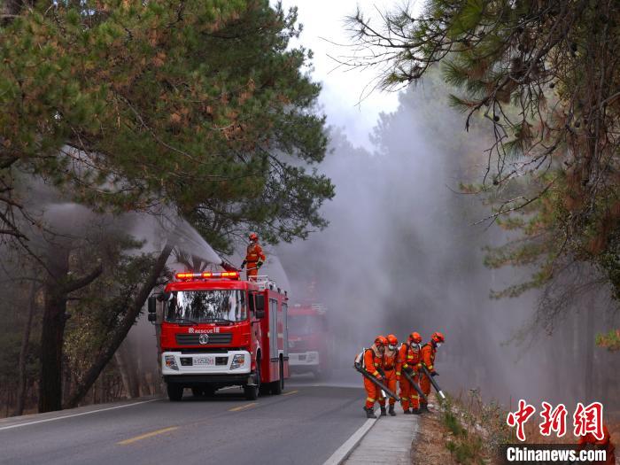 圖為森林消防員正在進行灑水增濕作業(yè)。 巴宜區(qū)森林消防中隊供圖