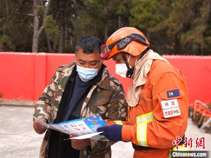 圖為森林消防員為民眾普及森防火知識。 巴宜區(qū)森林消防中隊供圖