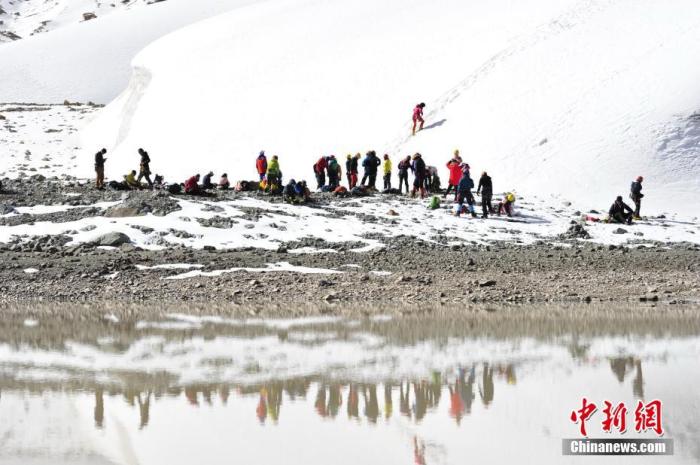 資料圖為登山愛好者在廓瓊崗日冰川進行冰雪訓(xùn)練。 中新社記者 貢嘎來松 攝
