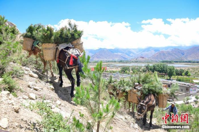 資料圖為拉薩河流域造林隊員運送樟子松樹苗。 中新社記者 貢嘎來松 攝