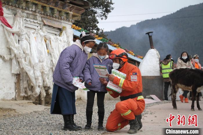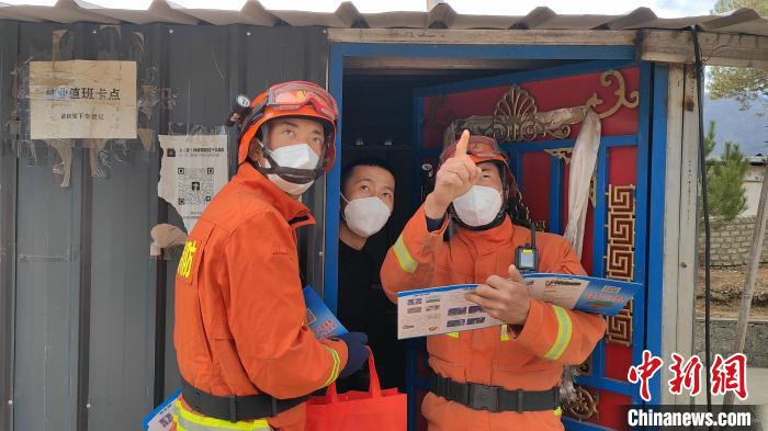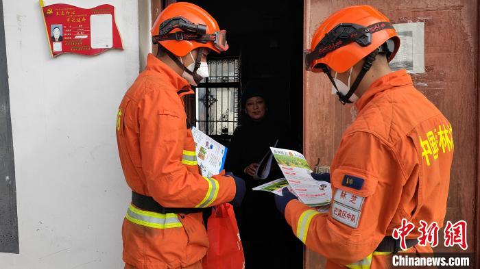 圖為森林消防員為駐地民眾科普防火知識。 林芝市森林消防供圖