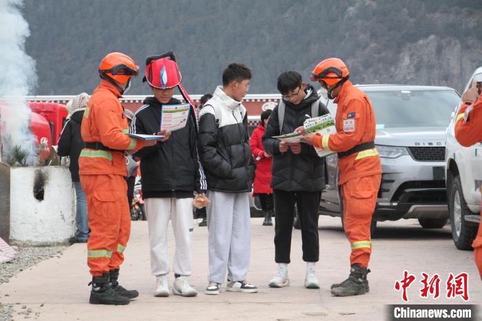 圖為森林消防員在景區(qū)重點(diǎn)區(qū)域普及防火知識。 林芝市森林消防供圖