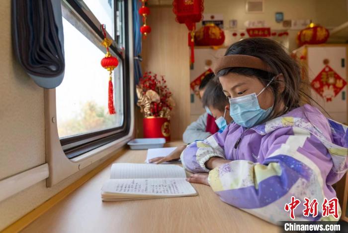 當(dāng)?shù)貙W(xué)生在“慢火車”上的學(xué)習(xí)車廂閱讀?!「惰?攝
