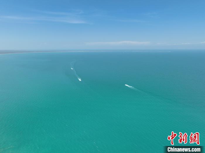 資料圖為航拍游輪在青海湖遨游。 祁增蓓 攝