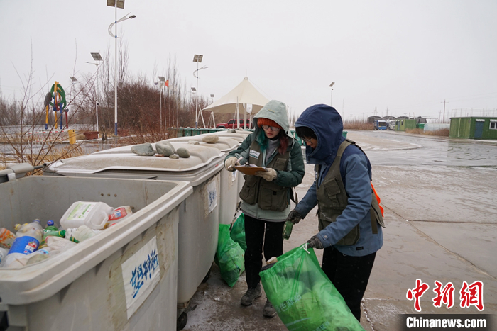資料圖為3月24日,青海省海西州格爾木驛的志愿者將垃圾分類并進(jìn)行數(shù)據(jù)統(tǒng)計(jì)。 中新社記者 馬銘言 攝