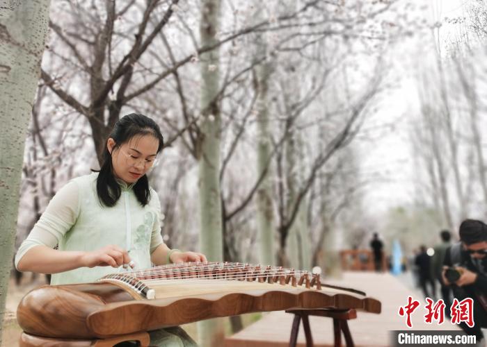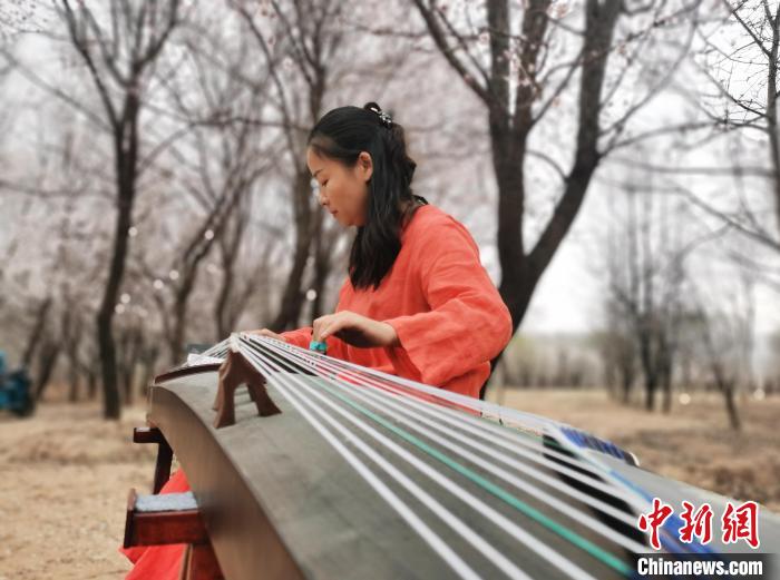 來自青海西寧的古力在杏花林撫琴,“我特意來到這邊,在杏花林彈古箏,畫面很美。花間彈琴本身是一種享受,希望也能感染踏青賞花的游客。”