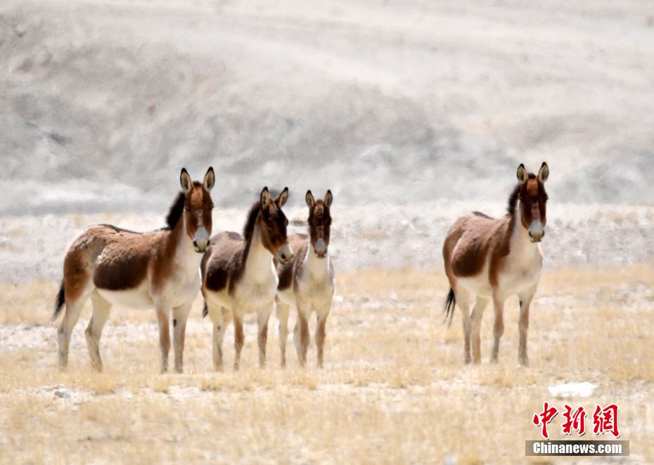 4月10日,西藏阿里地區(qū)札達縣拍攝到的藏野驢。藏野驢為國家一級重點保護動物、青藏高原特有物種。藏野驢是我國野驢中體型最大的一種,外形與蒙古野驢相似,但要比蒙古野驢大許多,而且性格也比蒙古野驢兇悍。它的四肢和身體下側(cè),包括頸下方白色,耳朵內(nèi)側(cè)和口鼻端也是白色。在背脊上,一條深色條紋從鬃毛處一直延伸到尾端,尾巴上有一簇黑色細絲狀的毛。近年來,隨著西藏生態(tài)保護力度不斷加大,藏野驢等多種野生動物頻頻亮相。