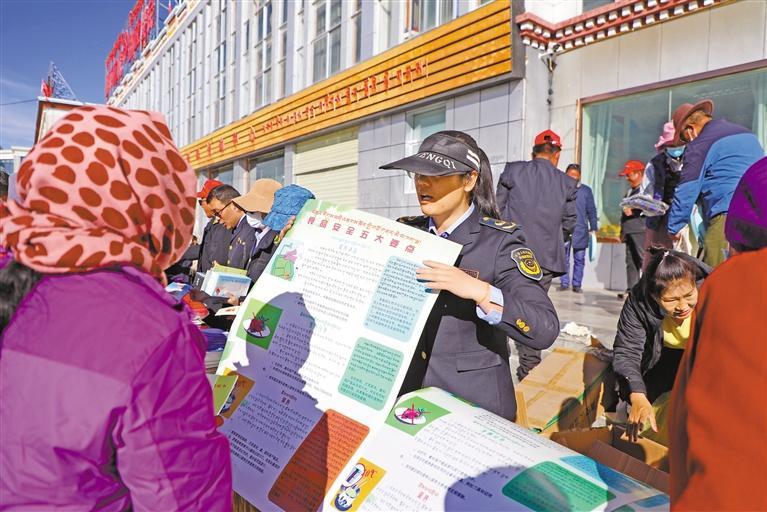 圖為阿里地區(qū)市場監(jiān)管局工作人員為群眾講解食品安全知識 。記者 洛桑旦增 攝