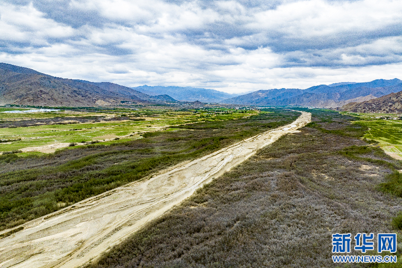 6月8日拍攝的隆子河谷兩岸的沙棘林(無(wú)人機(jī)照片)。新華網(wǎng) 旦增努布 攝
