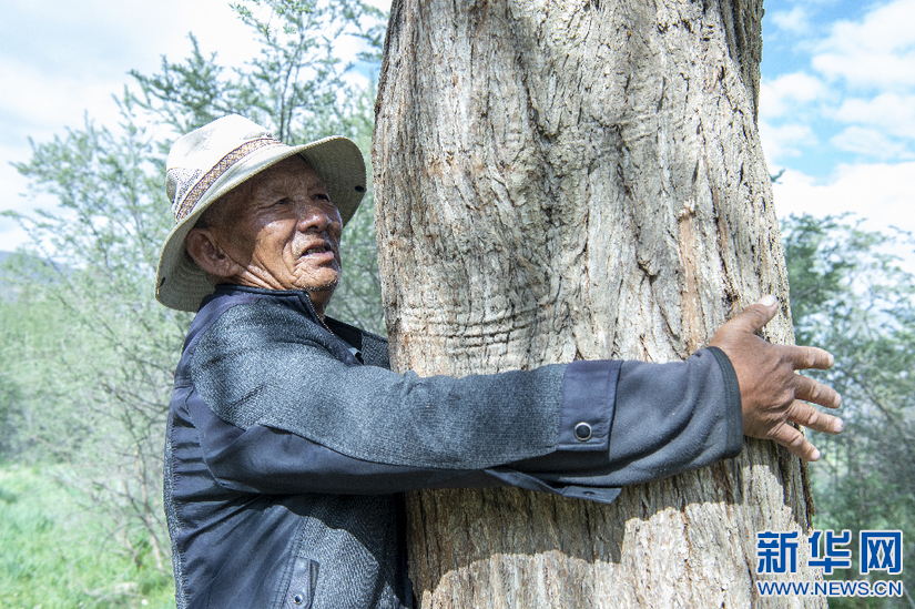 6月8日,索朗拉杰在展示40多年前種的沙棘。新華網(wǎng) 旦增努布 攝