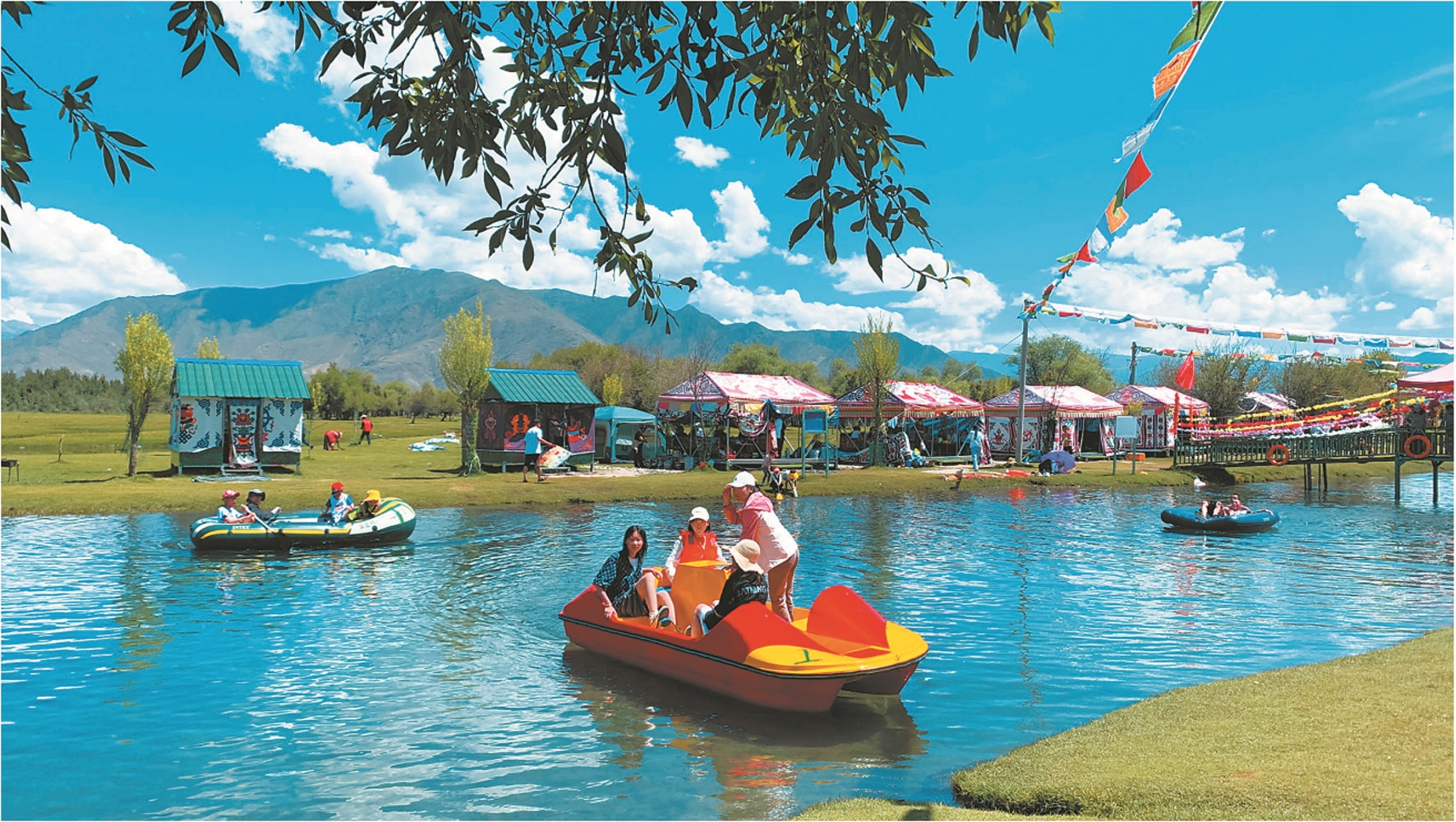 時(shí)下,正是“過林卡”的最好時(shí)節(jié),為了吸引客源、招攬生意,林卡經(jīng)營者不斷完善基礎(chǔ)設(shè)施,搭建漂亮的帳篷,提供特色服務(wù),滿足市民游客戲水、劃船、健身運(yùn)動和特色美食等需求。