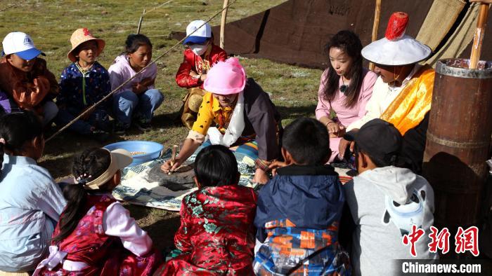 來自城區(qū)的青少年對游牧文化知之甚少。因此,他們對游牧生活充滿好奇。在當日的活動中,青少年們與納木錯湖邊的牧民搭帳篷、撿牛糞、打酥油、跳鍋莊,通過親身參與認識和了解高原故鄉(xiāng)的游牧文化及游牧民的生活習俗。
