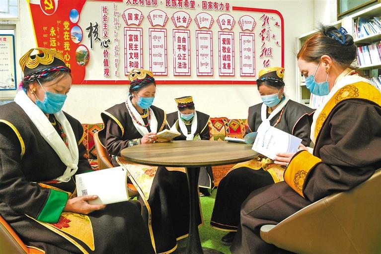 圖為林芝市工布江達(dá)縣金達(dá)鎮(zhèn)加龍村的群眾在農(nóng)家書屋讀書。記者 王敏 攝