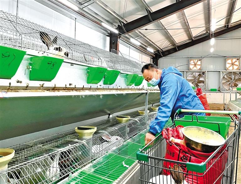 圖為拉薩市曲水縣才納鄉(xiāng)四季吉祥村獺兔養(yǎng)殖場(chǎng)的工人給兔子喂料。記者 旦增蘭澤 攝