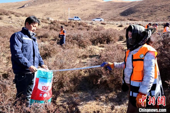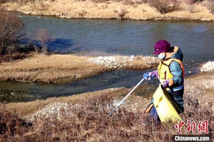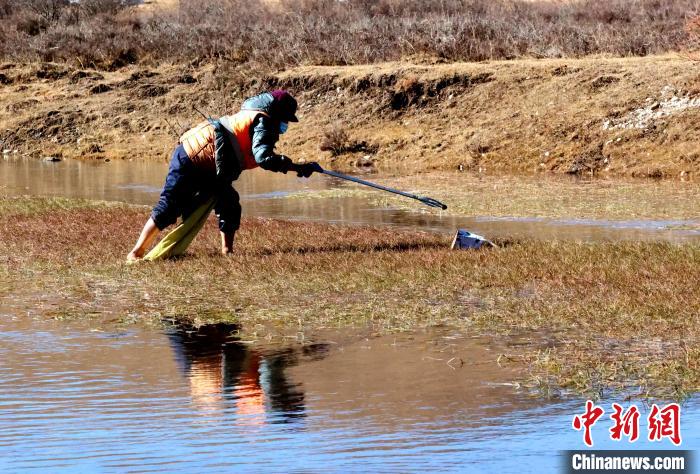 圖為管護員清理洮河沿線垃圾。薛蒂 攝