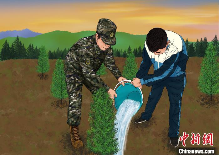 青海武警手繪“環(huán)?!焙?bào) 呼吁保護(hù)高原生態(tài)