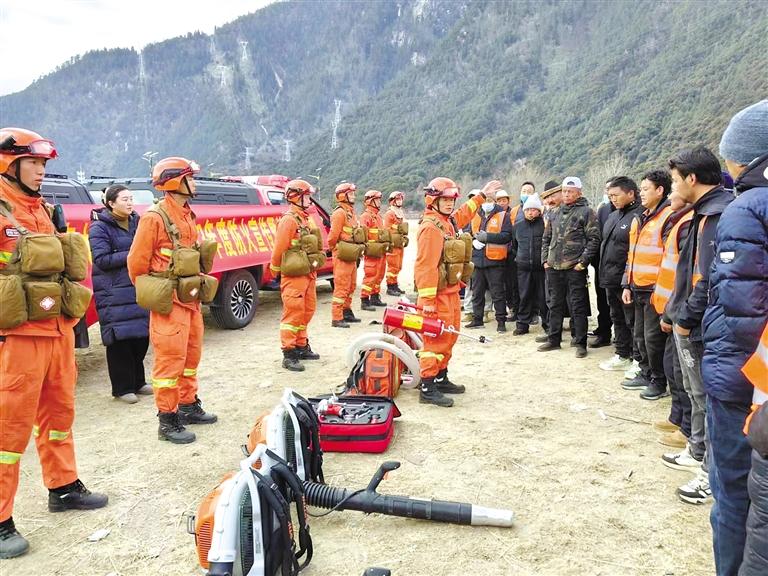 消防隊員對參訓(xùn)人員講解撲救森林火災(zāi)注意事項等方面內(nèi)容。圖片均由通訊員 尼瑪卓瑪 攝