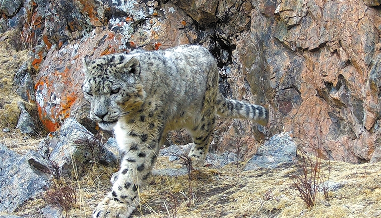 圖為漫步的雪豹。(祁連山國家公園青海省管理局供圖)