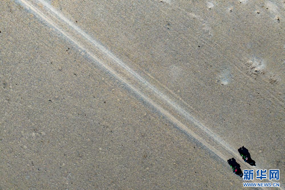 4月14日,野保員在色林錯(cuò)國家級自然保護(hù)區(qū)進(jìn)行日常巡邏(無人機(jī)照片)。新華網(wǎng) 旦增努布 攝