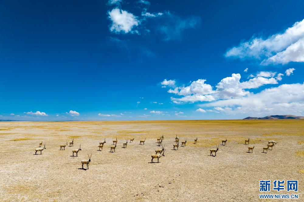 4月14日,在色林錯(cuò)國家級自然保護(hù)區(qū)拍攝的藏羚羊。新華網(wǎng) 旦增努布 攝