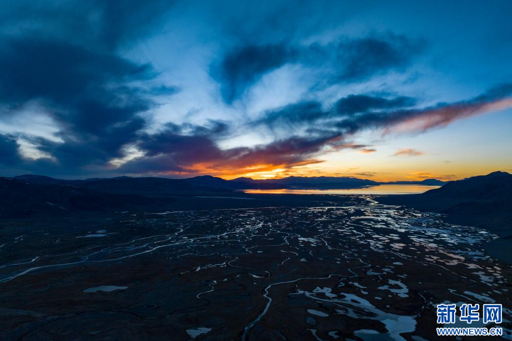 4月14日,傍晚從申扎縣縣城拍攝的色林錯(cuò)景致(無人機(jī)照片)。新華網(wǎng) 旦增努布 攝