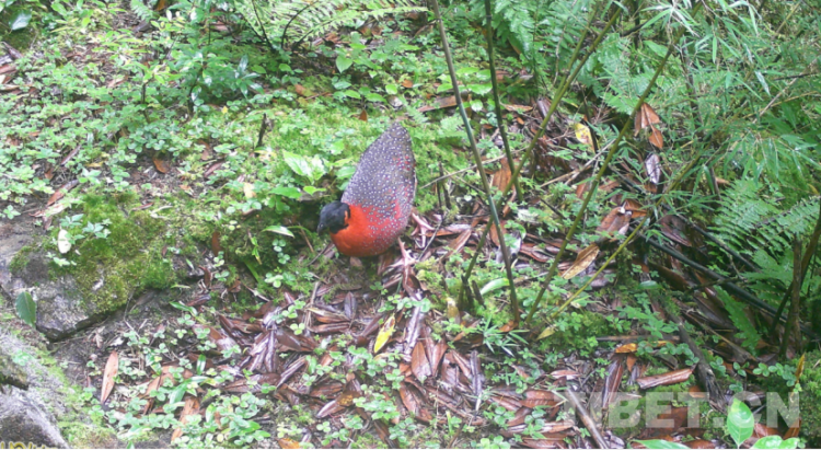 圖為紅外相機(jī)拍攝到的 紅胸角稚。