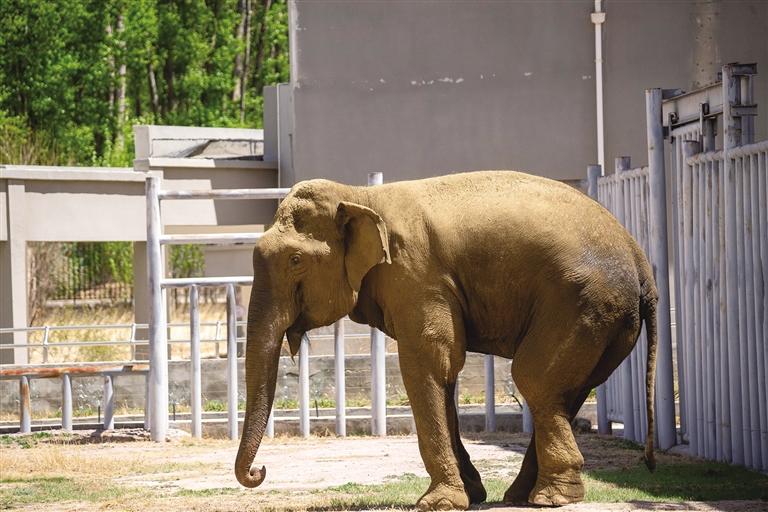 大象館是曲水動(dòng)物園的“明星場(chǎng)館”?!爸Z羅、諾羅……”聽(tīng)到飼養(yǎng)員阿尼的呼喚,大象立即調(diào)轉(zhuǎn)身子,朝著阿尼走了過(guò)來(lái)?!啊Z羅’是泰語(yǔ),是在呼喊大象?!卑⒛嵴f(shuō)。