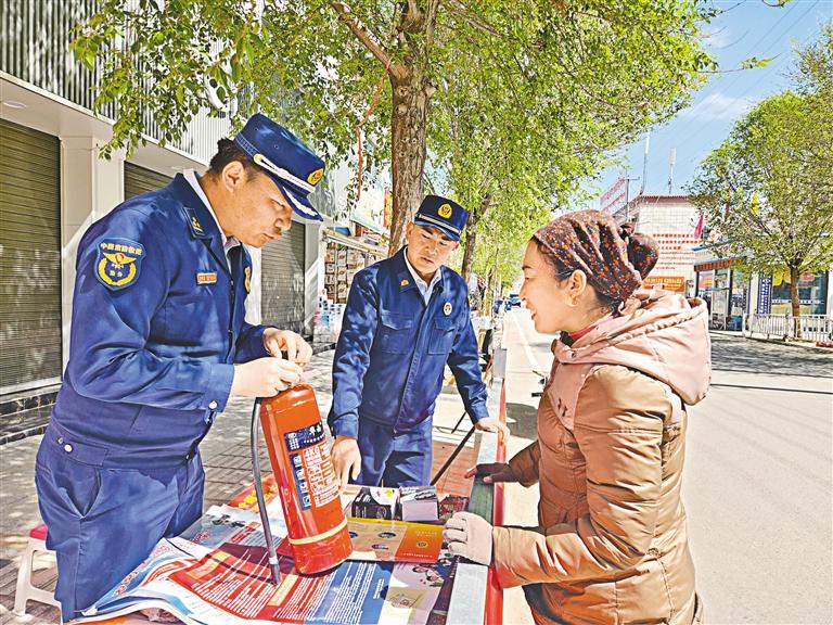 圖為消防宣傳人員在為群眾示范滅火器的使用方法。記者 旦增嘎瓦 攝