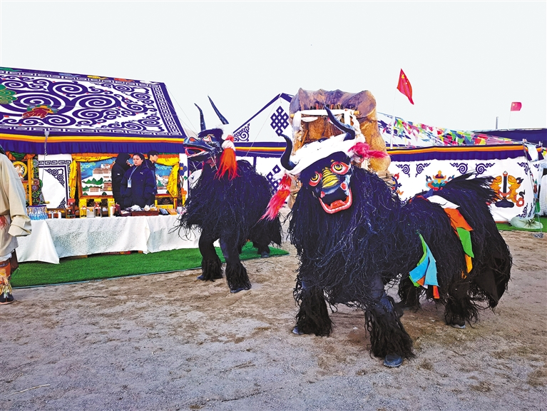 由300名演員將象征平安、吉祥的馬、牦牛、牛角、五彩哈達等元素融入表演全過程,藝術地展現(xiàn)獨有的開湖祈福場景。