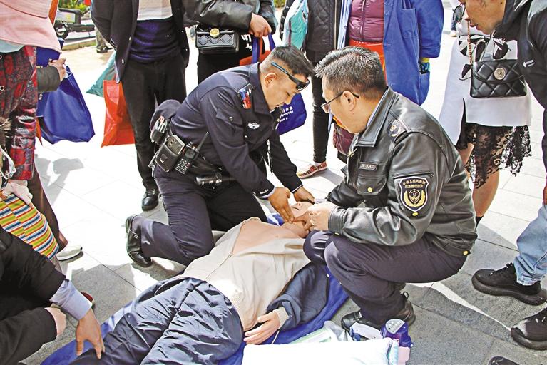 圖為工作人員用假人進(jìn)行急救措施講解。記者 劉斯宇 攝