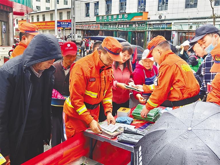 消防員發(fā)放防災(zāi)減災(zāi)知識(shí)手冊。記者 王雨霏 攝