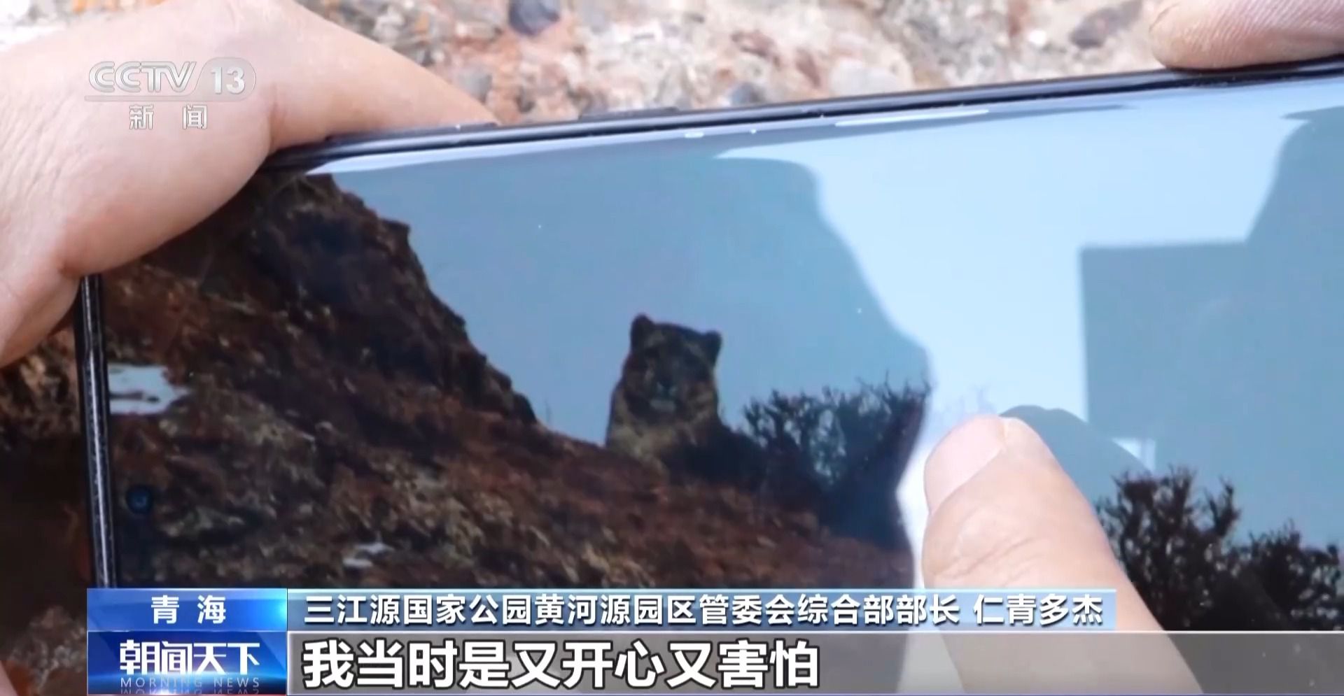三江源國家公園黃河源園區(qū)管委會(huì)綜合部部長(zhǎng) 仁青多杰:懸崖邊,我把頭一伸,雪豹?jiǎng)偤镁驮谶@,我當(dāng)時(shí)是又開心又害怕,它也不驚也不跑。