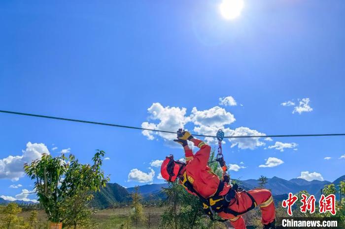 圖為駐訓(xùn)期間,森林消防進行繩索救援橫渡訓(xùn)練。姚天銳 攝