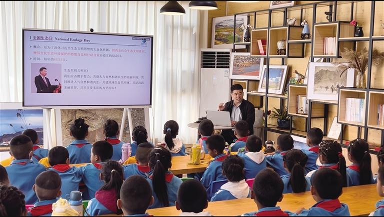 中國科學(xué)院地理科學(xué)與資源研究所為小朋友科普“全國生態(tài)日”。記者 王靜 攝