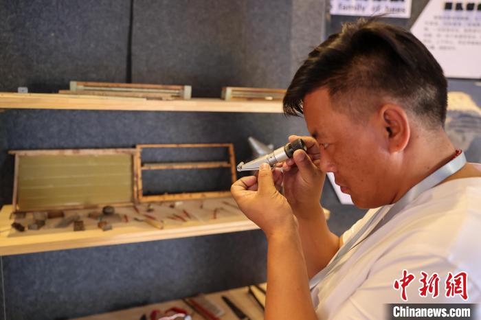 9月24日,記者跟隨2024年青海湖生態(tài)保護能力提升培訓班來到青海省海南藏族自治州貴德縣青海青藏蜜蜂良種養(yǎng)殖場,展示柜里擺放的蜜蜂標本。中新社記者 薛蒂 攝