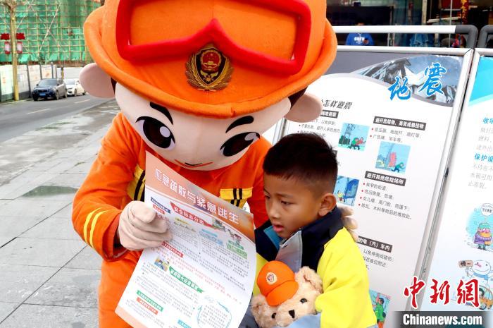 圖為消防救援人員為民眾宣講應(yīng)急知識(shí)。費(fèi)賢浩 攝