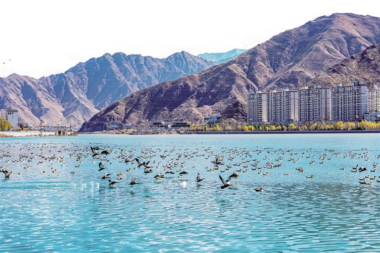 11月22日,記者來(lái)到拉薩市濱河公園和拉薩大橋,發(fā)現(xiàn)已有眾多候鳥(niǎo)陸續(xù)抵達(dá)拉薩,鳥(niǎo)類數(shù)量顯著增多。遠(yuǎn)處的雪山巍峨靜謐,拉薩河靜靜流淌,而靈動(dòng)的候鳥(niǎo)為這番景色增添了無(wú)限的生機(jī)與活力,一幅山水靜好、飛鳥(niǎo)翔集的美麗生態(tài)畫(huà)卷在眼前展開(kāi)。