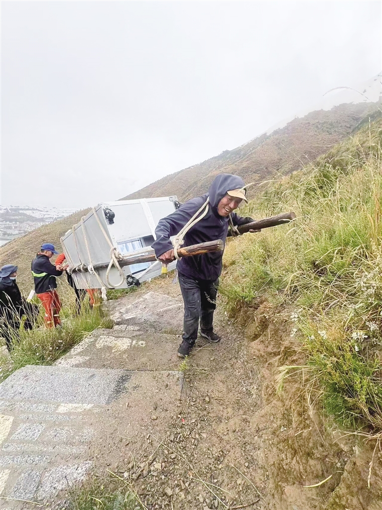 為了方便游客喝到平價飲料,單位引進(jìn)了12臺售賣機(jī),安裝在公園各個角落,售賣機(jī)里各種飲料、礦泉水等商品跟超市售賣的價格基本一致。扎西曲培說,他們將售賣機(jī)安裝在海拔4000米的地方,過程是艱難的。一臺售賣機(jī)重約400斤,車輛上不去,他和森林消防隊員通過人背肩扛,一步步抬上去的。目前,在南山公園“祖國萬歲”的山峰處,大家口渴了,拿出手機(jī)掃描一下,即可喝到平價的礦泉水。