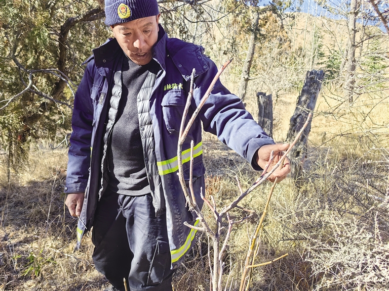 “2012年,我剛到南山公園工作時,這里還是一片荒山,別說樹了,山上的草都很少。”扎西曲培說,12年來,他每年都會在南山公園栽樹,累計栽樹1萬多棵。當(dāng)時栽樹,山上每一個樹坑都是用鐵鍬挖出來的,樹苗是人工背上去栽種的。目前,南山低海拔區(qū)域的樹坑是依靠挖掘機(jī)挖的,樹苗是通過馬馱或車輛拉過去的,栽樹也變得輕松些。